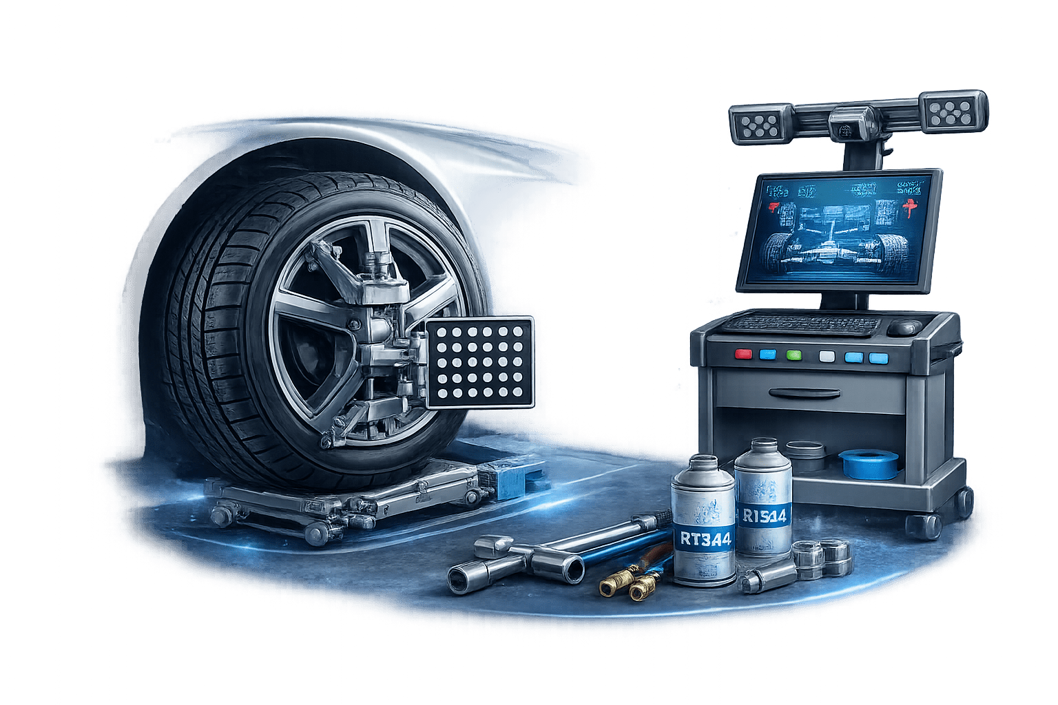 Elektronische Achsvermessung für optimale Spur, Fahrstabilität und gleichmäßigen Reifenverschleiß.